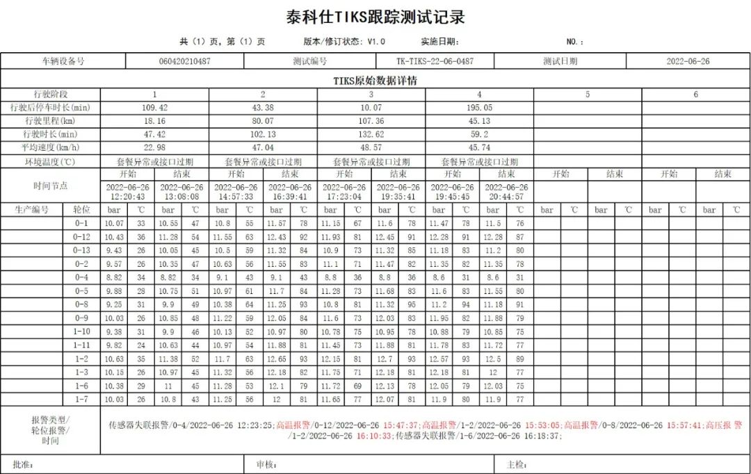 以上自动化温度预警设置是由泰凯英智能轮胎大数据应用平台V4.0综合分析得出,该大数据智能平台由泰凯英自主开发,是轮胎行业的首创,已获得软件著作权,在准确性与安全性上已经得到了市场验证和用户的肯定。